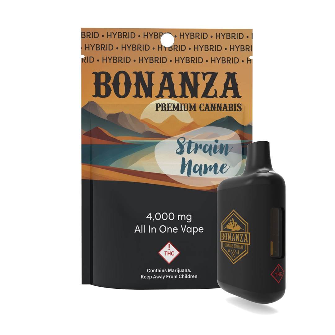 Bonanza All-In-One Vapes combine convenience and quality in a sleek, disposable design. Each device contains 4 grams of strain-specific cannabis extract, delivering smooth vapor, bold flavor, and consistent effects without the need for charging or refilling. Perfect for easy, on-the-go use, Bonanza AIO vapes are ready whenever you are. STRAIN TYPE: Balanced hybrid.