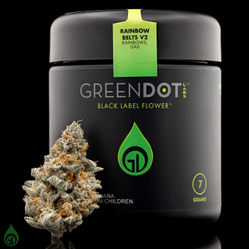 Green Dot Labs' Black Label Flower™ is prized by cannabis connoisseurs for its bold terpene profile, rich flavor, and exceptionally smooth smoke. Meticulously cultivated, harvested, and hand-trimmed at peak maturity, each batch is crafted to deliver intense flavor and a potent, heady high. Every Black Label Flower drop showcases only the finest buds from Green Dot Labs’ own gardens, featuring a rotating lineup of standout cultivars from their exclusive genetic library — selected for freshness, quality, and unparalleled smoking experience. LINEAGE: Rainbow Belts #20 x Rainbow Belts F1. PALATE: Rainbows, Gas. STRAIN TYPE: Indica-dominant.