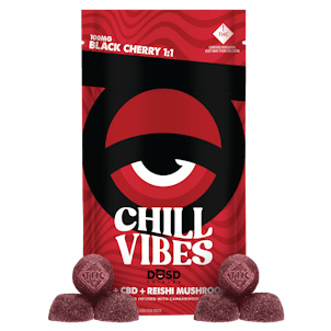 Black Cherry Flavored Gummies infused with Water-Soluble THC & CBD Cannabinoid Nanoparticles + Reishi Mushrooms. Average Onset: 15-25 minutes Pieces per package: 10 x 10mg pieces (10mg THC + 10mg CBD + 25mg Reishi Mushrooms per piece) What are Cannabinoid Nanoparticles? DOSD Chill VIbes Nano Bites contain cannabinoid nanoparticles made from ultra-refined distillate, which are utilized by the body much more efficiently than unrefined oils. With increased bioavailability of THC & CBD, you can expect more out of your dose...with far less waiting.