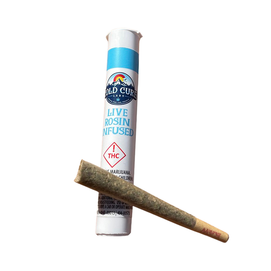 The perfect combination of flower and cold cured live rosin, these live rosin infused joints from Cold Cure Labs burn slowly and draw effortlessly letting you savor the full spectrum of flavors and effects. STRAIN TYPE: Balanced hybrid.