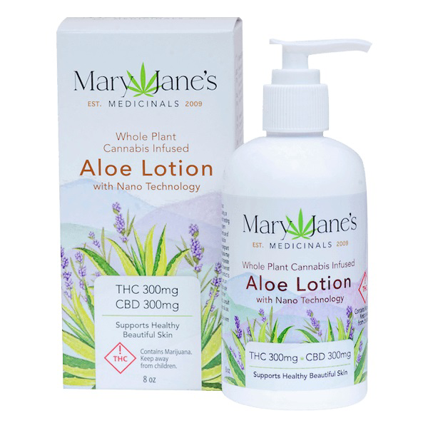 Embrace yourself in a world of luxury with Mary Jane's Medicinals Aloe Lotion. Cannabis and aloe are known to renew skin at a cellular level. Combining that with rich plant oils, nanotechnology for deeper absorption, and an precious blend of therapeutic-grade essential oils, makes this a truly exceptional lotion. Brimming with antioxidants and vitamins, your skin will glow while fine lines and age spots diminish. Protect your skin from the elements and help it naturally recover from sun exposure. Mary Jane's Medicinals Aloe Lotion is a perma-grin for your skin!