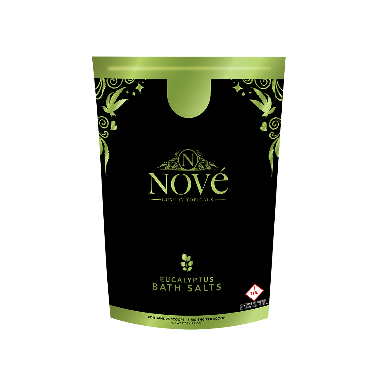 Breathe the clean, cooling essence of eucalyptus, contrasting the warmth of your steaming bath. Enjoy Nové topicals, crafted from premium herbal ingredients and the finest cannabis oil. HOW TO USE: Pour and dissolve one scoop of our cannabis bath salts into warm water.