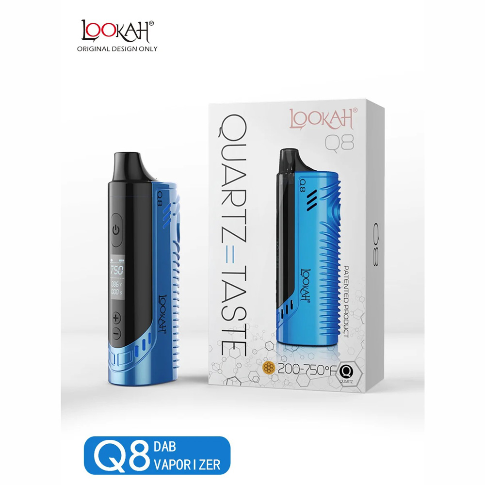 LOOKAH Q8 Portable Wax Pen The Q8 is a variable-temperature wax pen for dabbing on the go. It is our best portable vaporizer for wax concentrates with a huge battery life. Precision temperature settings in 5-degree increments let you find the perfect setting for your wax. Choose from 200 to 750 degrees Fahrenheit. With this precise temperature setting, you can recreate the perfect vaping experience every time with the Q8 wax vape pen. The quartz chamber in the Q8 wax pen is built-in. This integrated coil heats on the bottom and sides to give a more balanced heating profile, improving each dab's flavor. The constant temperature session mode means that when the coil heats up, it will remain at the pre-set temperature for a 60-second session, giving you ample vaping time to enjoy your wax. A large digital display shows the set temperature, current temperature, battery charge, and session time remaining, so you have all the necessary information in one place. Fast heat-up times ensure the coil goes from zero to your set temperature in seconds. So you won't have to wait to vape. The 3000mAh battery capacity delivers a delivers powerful performance and allows the vape to go for days between charges. No more running out of power after just a few sessions; enjoy the freedom to vape on the go without needing to charge your device constantly. How to Use the Q8 Wax Pen The LOOKAH Q8 is easy to use: simply slide off the magnetic mouthpiece and load the material into the chamber. Slide the top back in place and then turn the device on with five clicks of the power button. Use the plus and minus buttons to set your desired temperature between 200°F and 750°F. Press and hold the power button, and the vape will vibrate to let you know it is preheating. In about 15 seconds, it will vibrate and will then hold the set temperature for your 60-second session. After that, you can reset it and use it again as needed. LOOKAH Q8 built-in carbine cap with adjustable airflow. Inside the chamber is a quartz dish that heats up. This prevents the wax material from direct contact with the heating element of the coil. Because of that the LOOKAH Q8 provides pure and smooth taste. LOOKAH Q8 can be charged through USB charger with 5V/1000mA. Q8 featured with 5V/1000mA. 1) For WAX. 100% QUARTZ Chamber and QUARTZ dish, Wax does not come into contact with coil, no burnt taste provides a purer and original flavor taste 2) Preheat function 3) Constant Temperature, Safe to dab. 4) Easy to clean 5) Best portable vaporizer for wax 6) Affordable device compared with Puffco Peak 7)Long-life battery, Class-A battery quality 8)Temperature up to 750F 9) Durable Quartz Quality 10) Magnetic slid cap, easy to use.