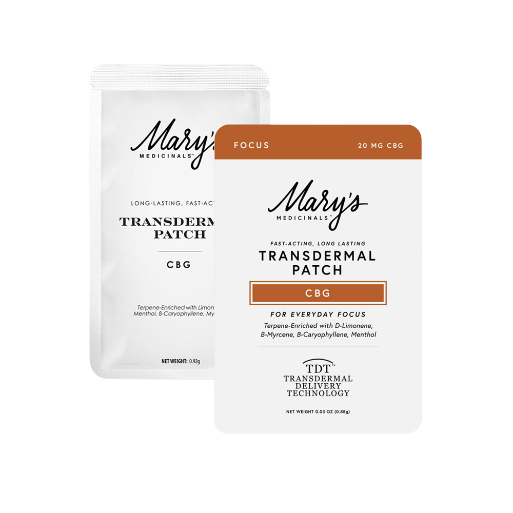 Focus Transdermal Patches are designed to provide a natural and sustained boost of focus and concentration throughout the day. Formulated with CBG and other natural ingredients that work together to promote mental clarity, cognitive function, and alertness, these are the perfect addition for incorporating into your daily routine. Looking for FOCUS Transdermal Patches online? Find them on our hemp-derived Mary’s Nutrtionals website here! Mary’s award-winning transdermal patches come from our commitment to accurate dosing through an advanced delivery method. The discreet 2×2” squares simply adhere to any veinous part of the skin like the inner wrist of top of the foot for 8-12 hours of effect. Heat, sweat and water-resistant, Mary’s patches can be simply and accurately micro-dosed by cutting them down. DOSAGE: 20mg CBG. Tips for Use: Remove the plastic liner and press the patch firmly onto clean, dry skin. Apply the patch to venous areas, like the wrist or top of your foot. The patches are sweat and water-resistant. Mary’s Patches can easily be micro-dosed by cutting them down into halves or quarters. 8-to-12-hour time release remains the same regardless of dosage. Onset: 15-30 mins When not wearing a patch, keep the area moisturized. This will ensure optimal performance when using patches.