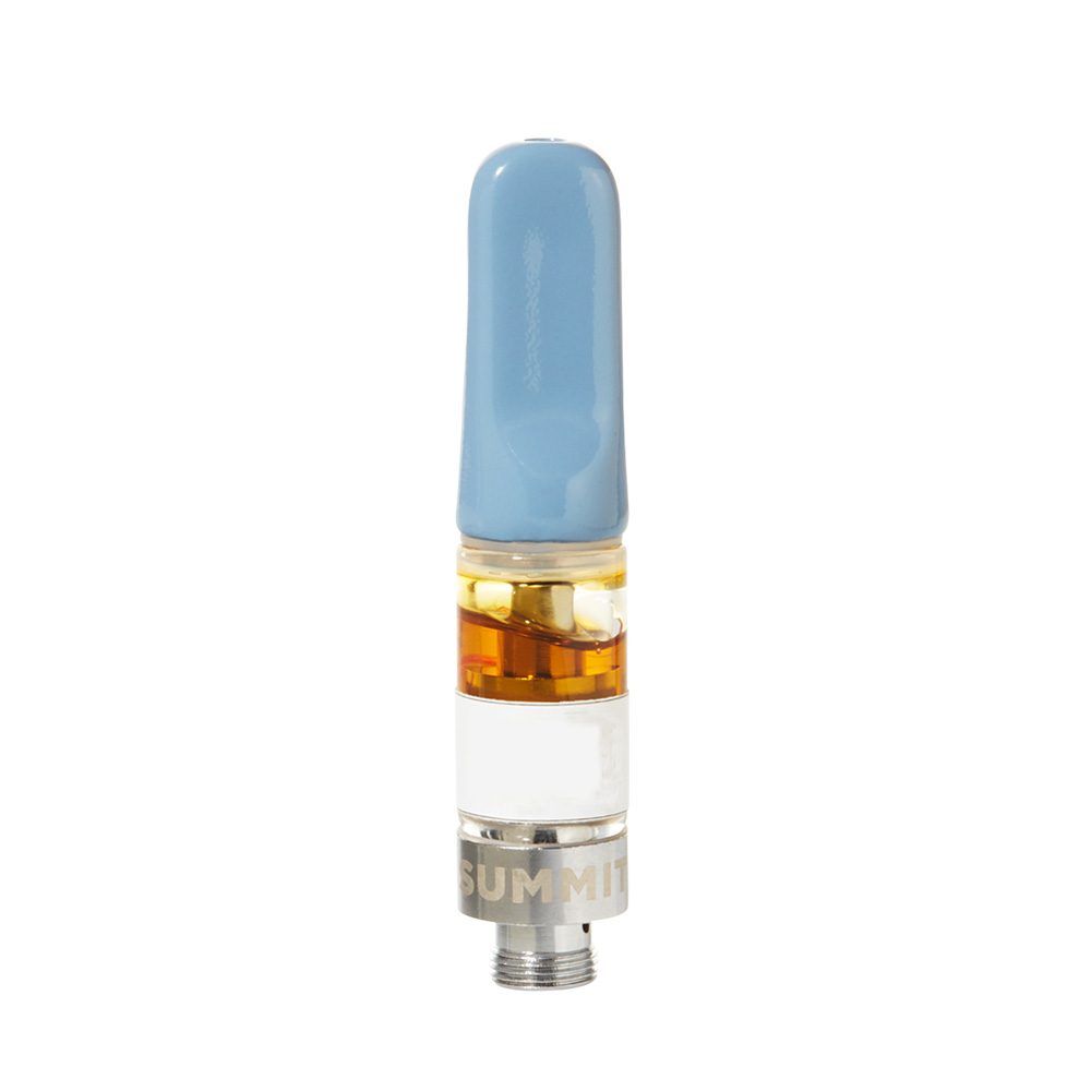 Summit Live Rosin Vape Cartridges give you all the native cannabinoids and terpenes from the in house flower in the convenience of a vape cartridge. We’ve added color-coded mouth pieces (blue for indica, red for sativa, and green for hybrid) and strain labels so you always know what you’re vaping. These cartridges contain the finest Live Rosin sauce with absolutely no added terpenes, flavoring, cutting agents, or fillers.