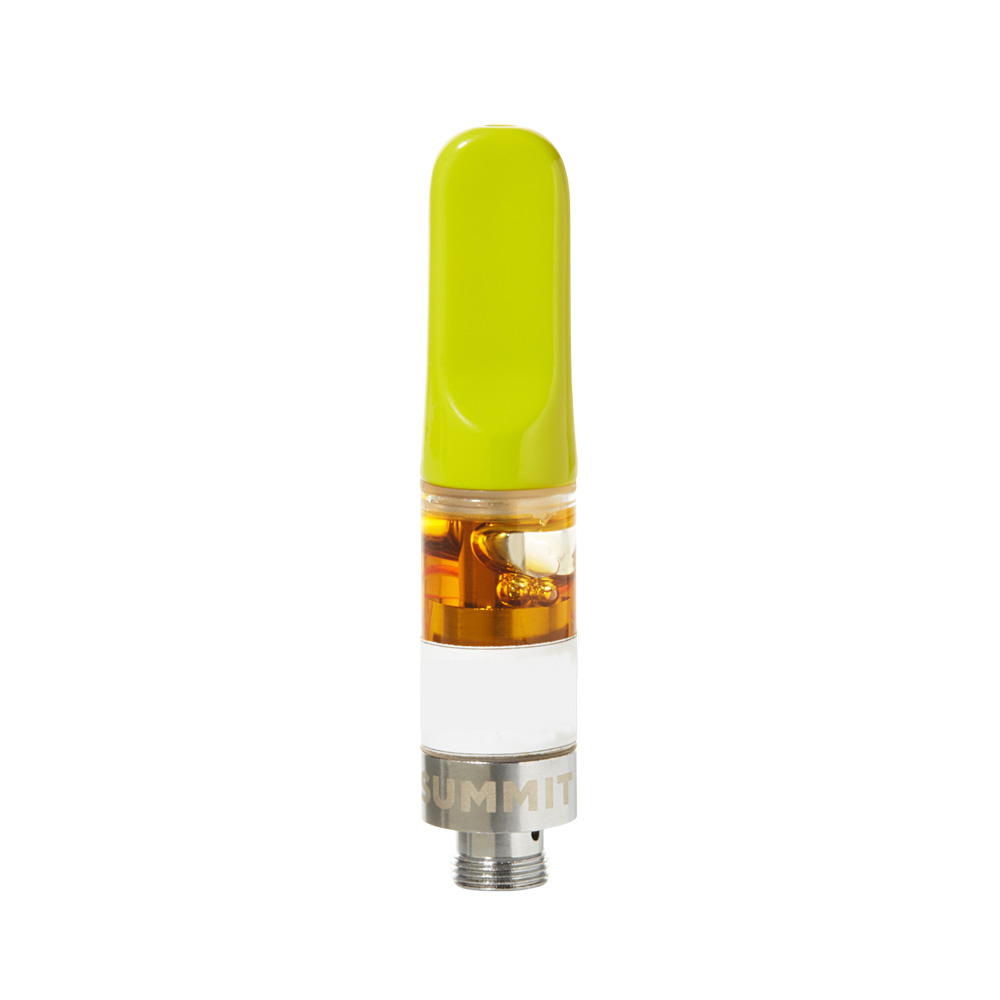 Summit Live Rosin Vape Cartridges give you all the native cannabinoids and terpenes from the in house flower in the convenience of a vape cartridge. We’ve added color-coded mouth pieces (blue for indica, red for sativa, and green for hybrid) and strain labels so you always know what you’re vaping. These cartridges contain the finest Live Rosin sauce with absolutely no added terpenes, flavoring, cutting agents, or fillers. STRAIN TYPE: Balanced hybrid.