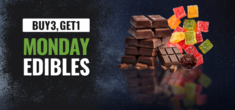 Buy 3, Get 1 for $0.1 on all cannabis edibles and infused drinks every Monday